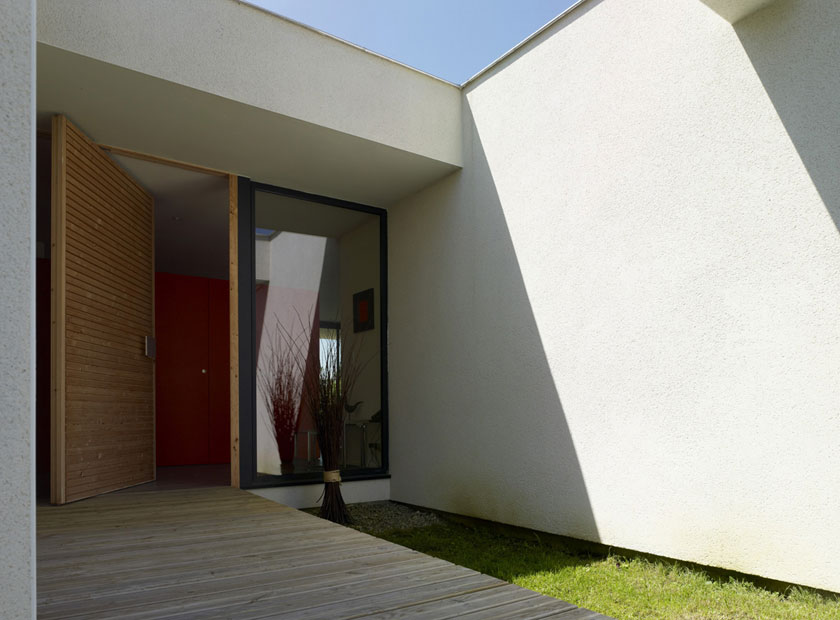 Tous les espaces de la maison se dilatent sur le jardin par le biais de terrasses (sur toutes les orientations), qui sont pour la plupart protégées des intempéries. Toutes les ouvertures ne sont jamais au nu de façade mais plutôt en retrait assurant ainsi une protection au soleil ou aux intempéries.